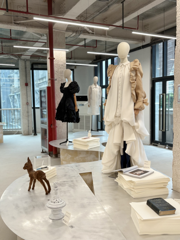 在二层的“A Magazine Curated By:25年·策展与创造”展区,34位国际知名时装设计师的服装设计作品与灵感物件汇聚一堂。杂志主编之一亲临现场,为同学们讲解分享了设计师创作的背后故事与杂志25周年展的策划理念。在张雪老师的引导下,同学们自由探索,并结合《时尚新闻学》的与《时尚传播》的课程知识,对时尚杂志的编辑、展览的空间叙事及观展体验策划进行了细致观察与记录。